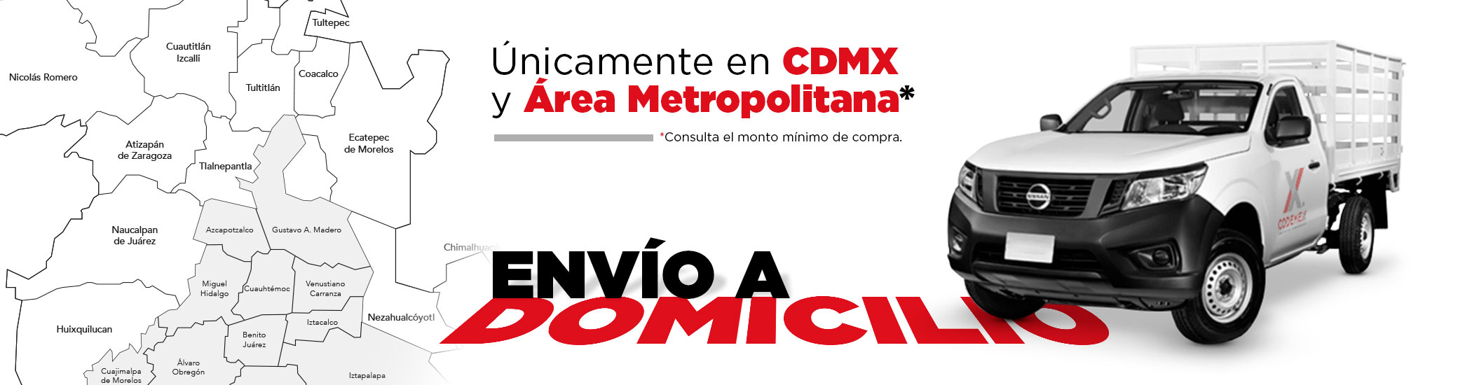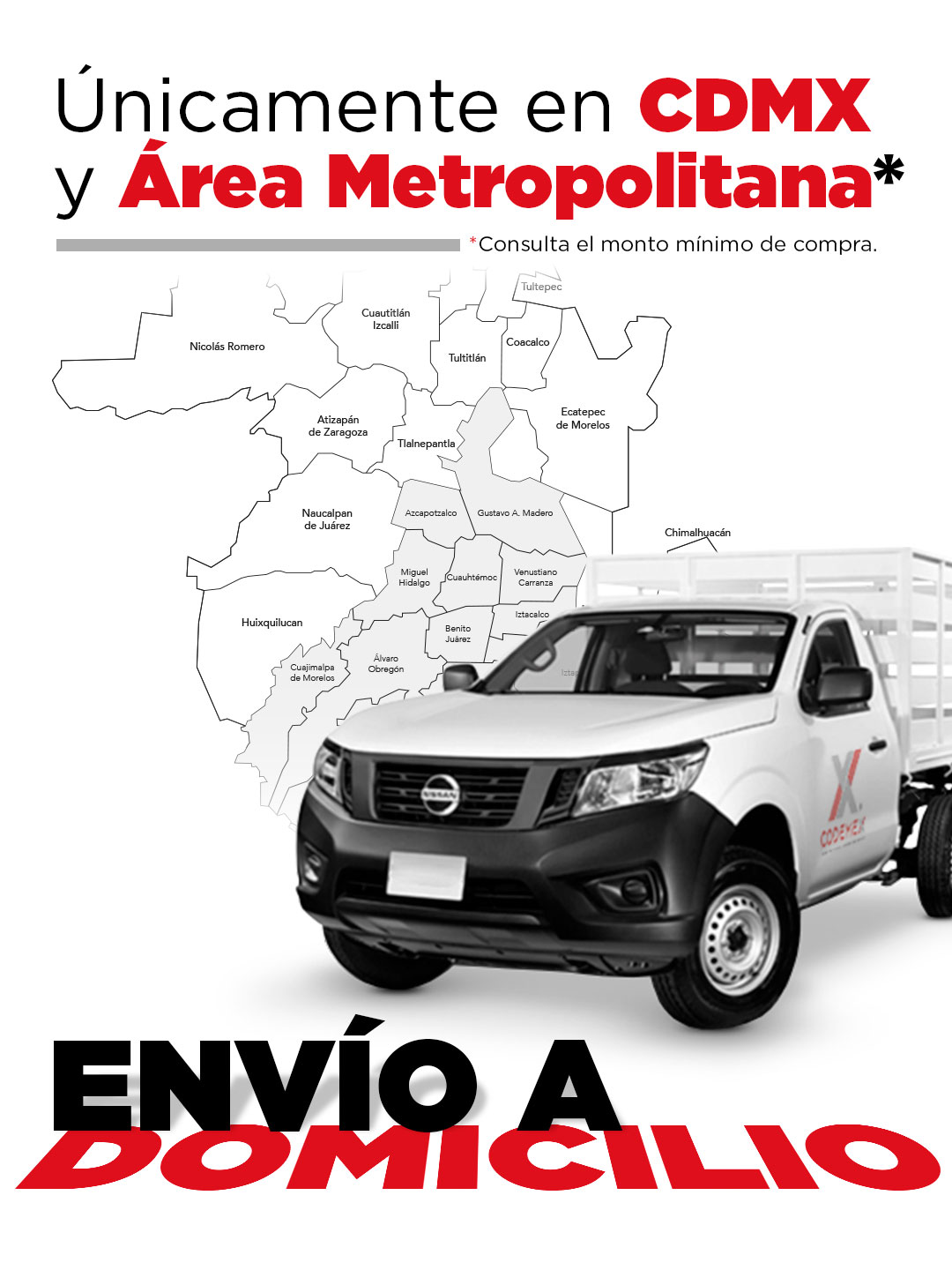 Te facilitamos la entrega de materiales Únicamente en CDMX y Área Metropolitana del Estado de México. Consulta compra mínima requerida con tu asesor.