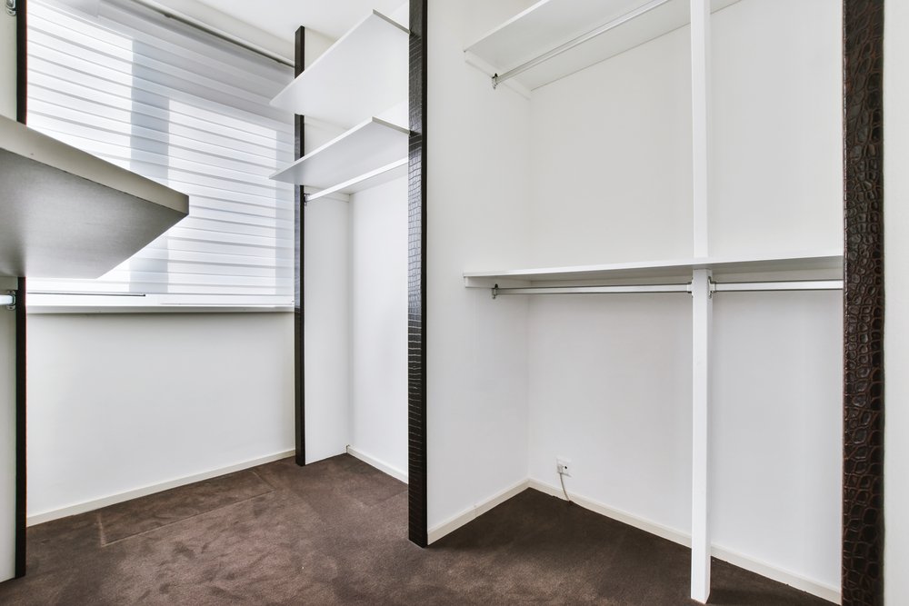 Como lo mencionamos antes, otra excelente opción para la decoración de las habitaciones es un clóset con divisiones, creado con tablaroca. Este será un gran toque decorativo, ya que se le puede dar el estilo que se quiera para complementar la recámara y hacer juego con el cabecero.